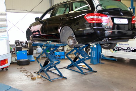 Auf verschiedenen Bühnen können Fahrzeuge vom Pkw bis zum Wohnmobil repariert werden